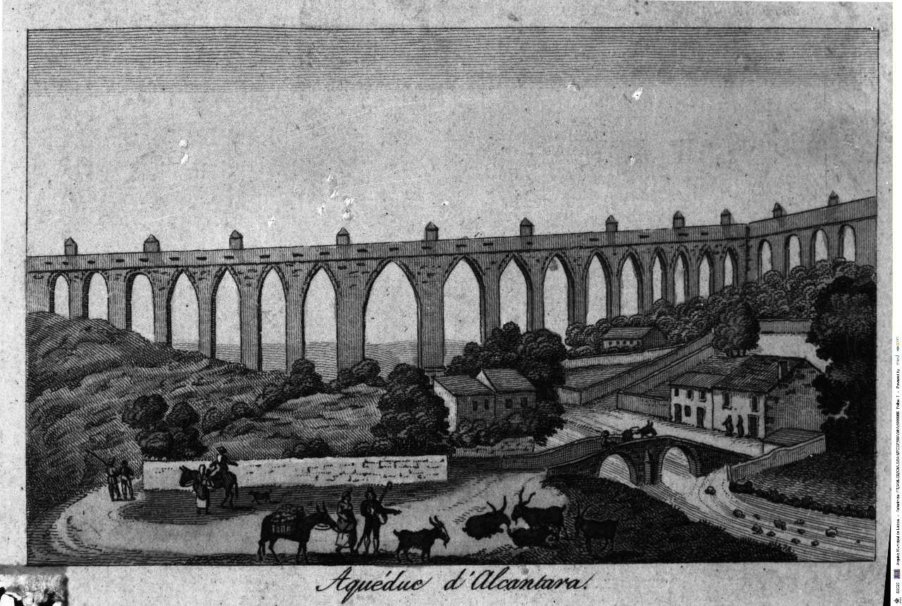 Considering that the funds collected by the tax already allowed for the beginning of the construction work, King D. João V boosted the work and appointed the Italian architect Cannevari as director of the project. His appointment can only have surprised some of the technicians who participated in the preparatory works for the project and especially Manuel da Maia, given that the Italian architect had always been a great non-believer in the possibility of the nearby springs being able to supplying Lisbon. In the set of documentation elaborated, the Considerations of Manuel da Maia were the most complete supply plan that emerged throughout the project, making the author a potential competitor to the position held by the Italian. Soon the opinions of the two technicians contradicted, the environment was anything but consensual leading to the isolation of the Italian architect from the Portuguese, who wore out and asked permission to return to Italy. With Cannevari put to one side, three engineers emerge naturally, including Manuel da Maia, and were appointed to the direction of the project. But individual positions, again, become extreme and the King was forced to choose a project with a clear direction. In 1736 the architect Custódio Vieira was appointed to the position of director, and whose period of validity will allow the development of the project to run at a good pace for the first time (in less than two years Lisbon saw the completion of the main section of the Aqueduct) and was only slowed down by the construction of the monumental crossing of the Alcântara valley that occupied the final part of Custodio Vieira’s life. Soon after his death, in 1744 the first voices disagreeing with the large and risky option that the architect had chosen for the transposition of Ribeira de Alcântara were made know, and for a brief period there was a return to the chaotic situation of the beginning of the project, until it is proceeded with the name of Carlos Mardel who is a decisive voice of power in the technical aspect of the project. The risk of the gallery of arches being next to the reservoir of Amoreiras, including the triumphal arch, as well as the great reservoir of Amoreiras, a magnificent Temple of Water as it was once called, was entirely his.